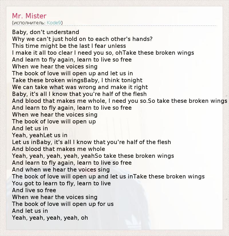 А как ты думаешь, о чем песня "Mr. Mister" ?