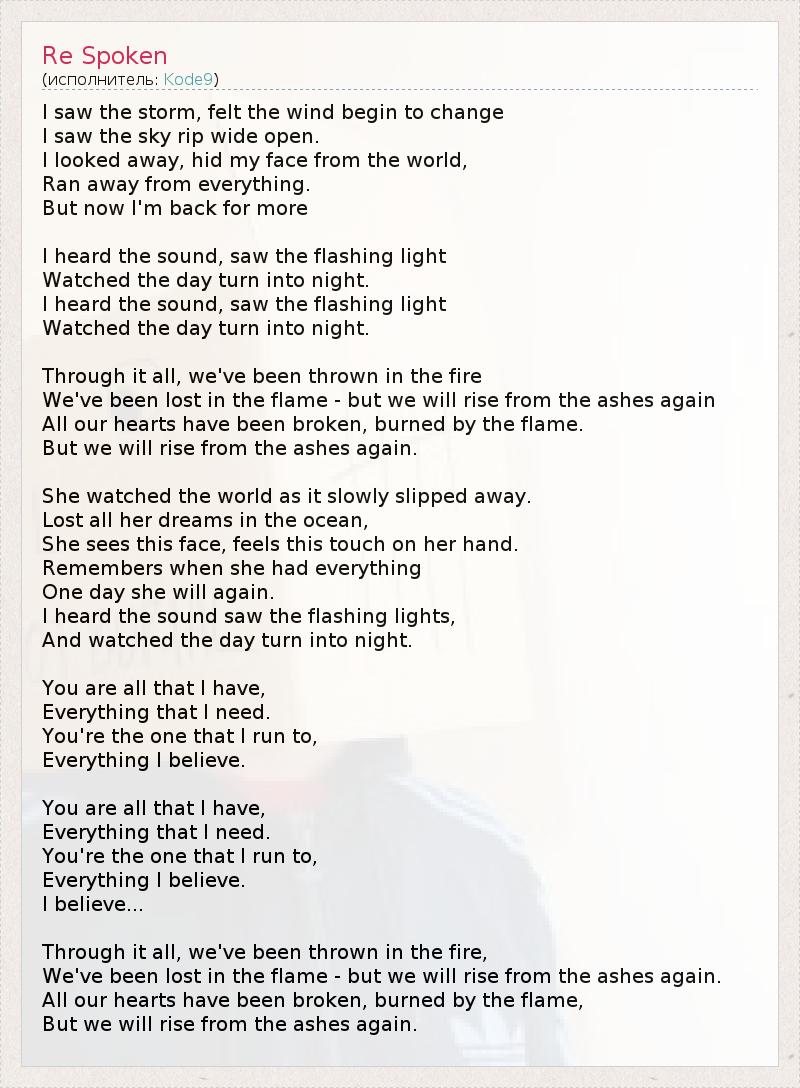 А как ты думаешь, о чем песня "Re Spoken" ?