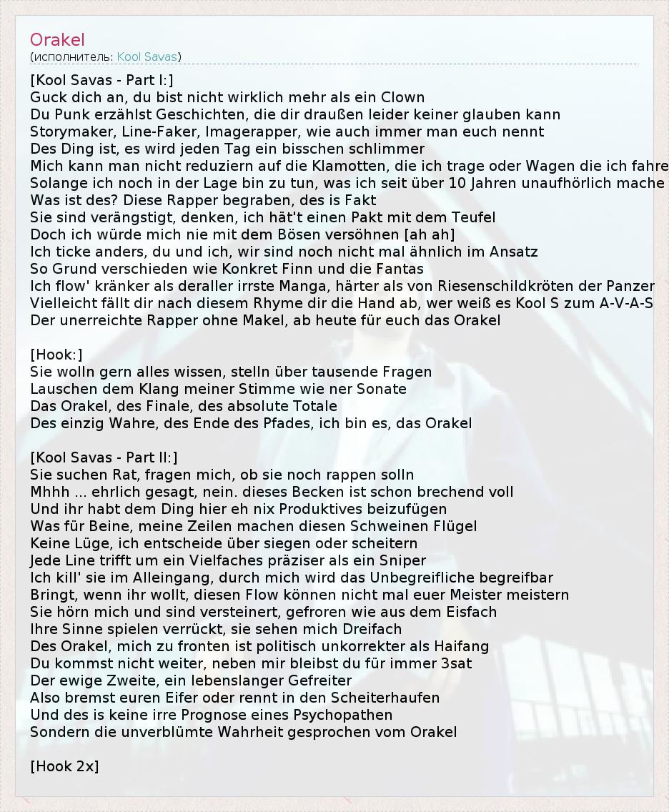 Это интересно:Kool Savas родился 10 февраля 1975 года в Аахене настоящее имя Savas Yurderi- это немецкий рэппер турецкого происхождения.Отец родом из Турции. в 1987 году они перебрались в Берлин.Карьера для этого рэппера началась с песни Warum rappst du? Дальше публика могла услышать его скандально известные песни: “Гомосексуальный рэппер”,“Соси мой *уй” и т.д. До этого момента его можно было услышать под псевдонимом... продолжение