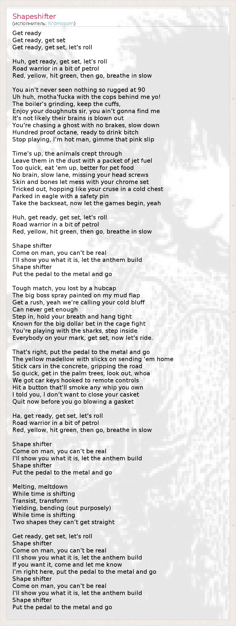 А как ты думаешь, о чем песня "Shapeshifter" ?