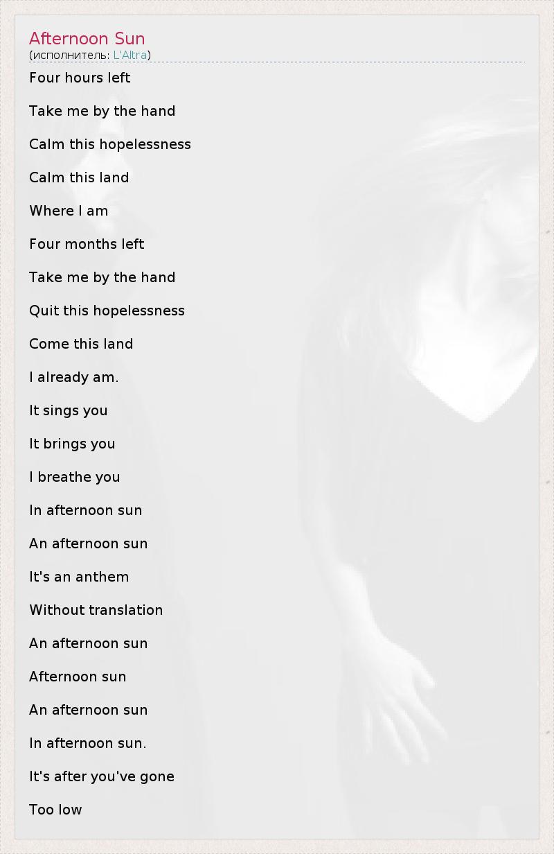 А как ты думаешь, о чем песня "Afternoon Sun" ?