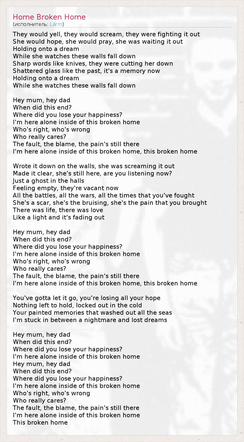 А как ты думаешь, о чем песня "Home Broken Home" ?