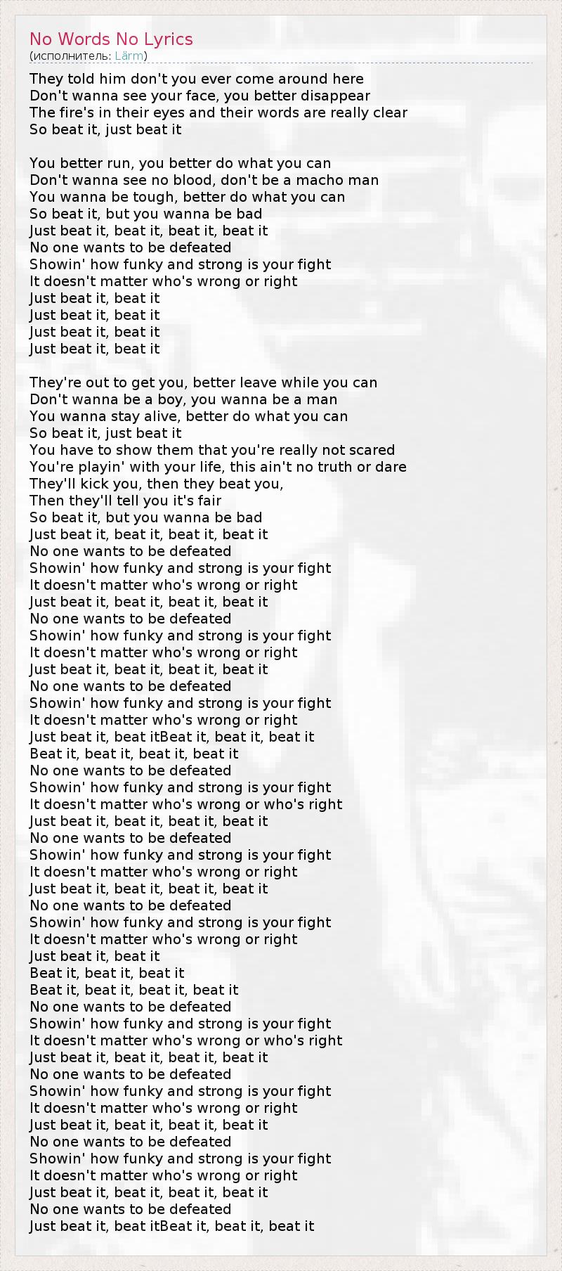 А как ты думаешь, о чем песня "No Words No Lyrics" ?