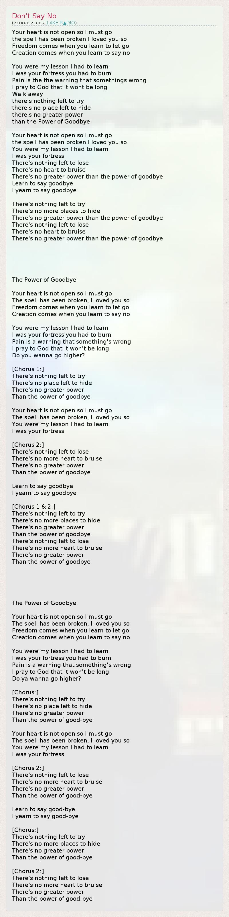 А как ты думаешь, о чем песня "Don't Say No" ?