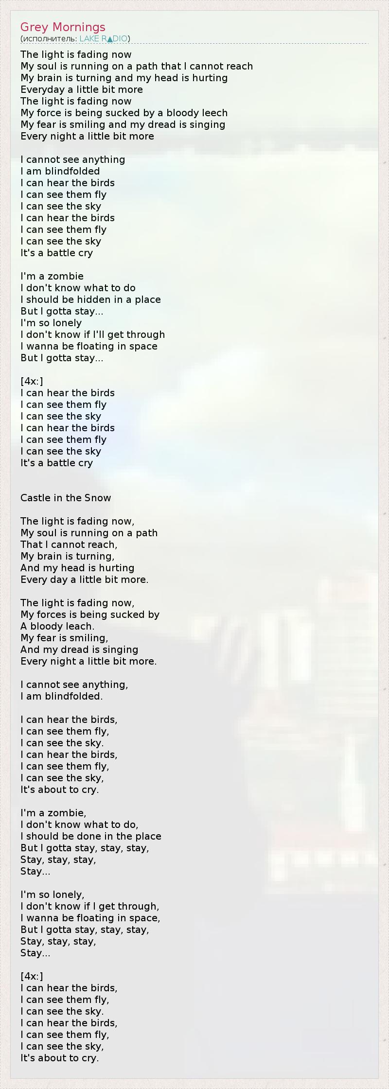 А как ты думаешь, о чем песня "Grey Mornings" ?