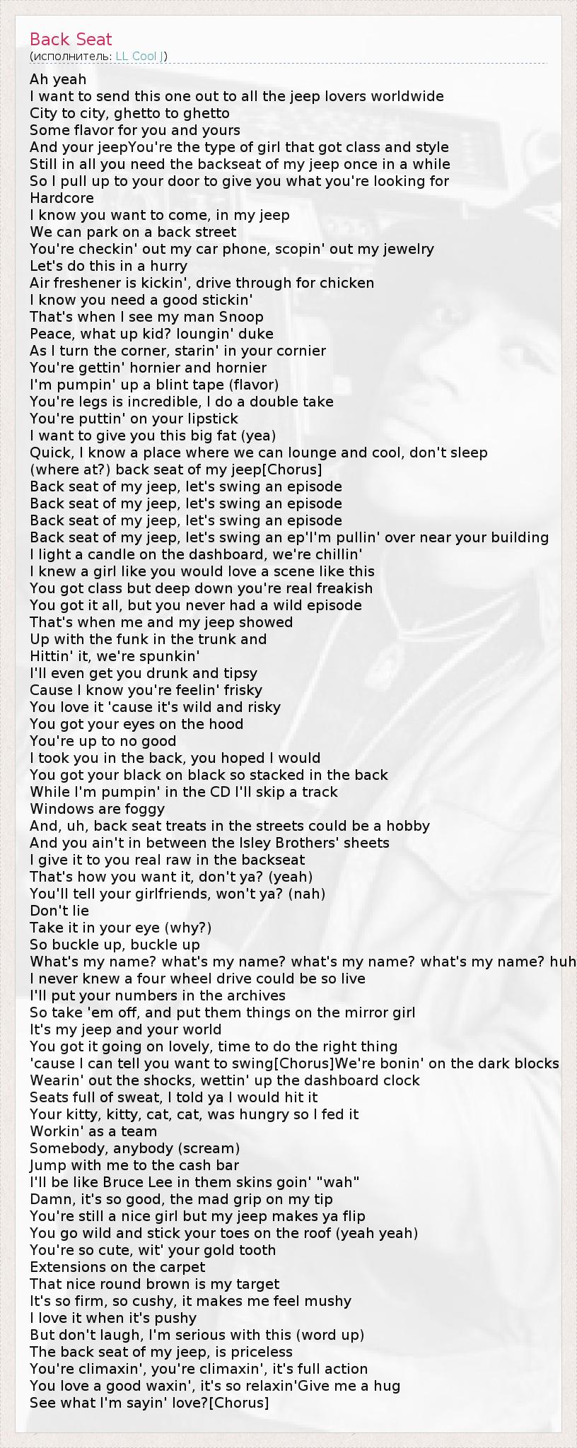 Back seat of my jeep, let's swing an ep'I'm pullin' over near your building