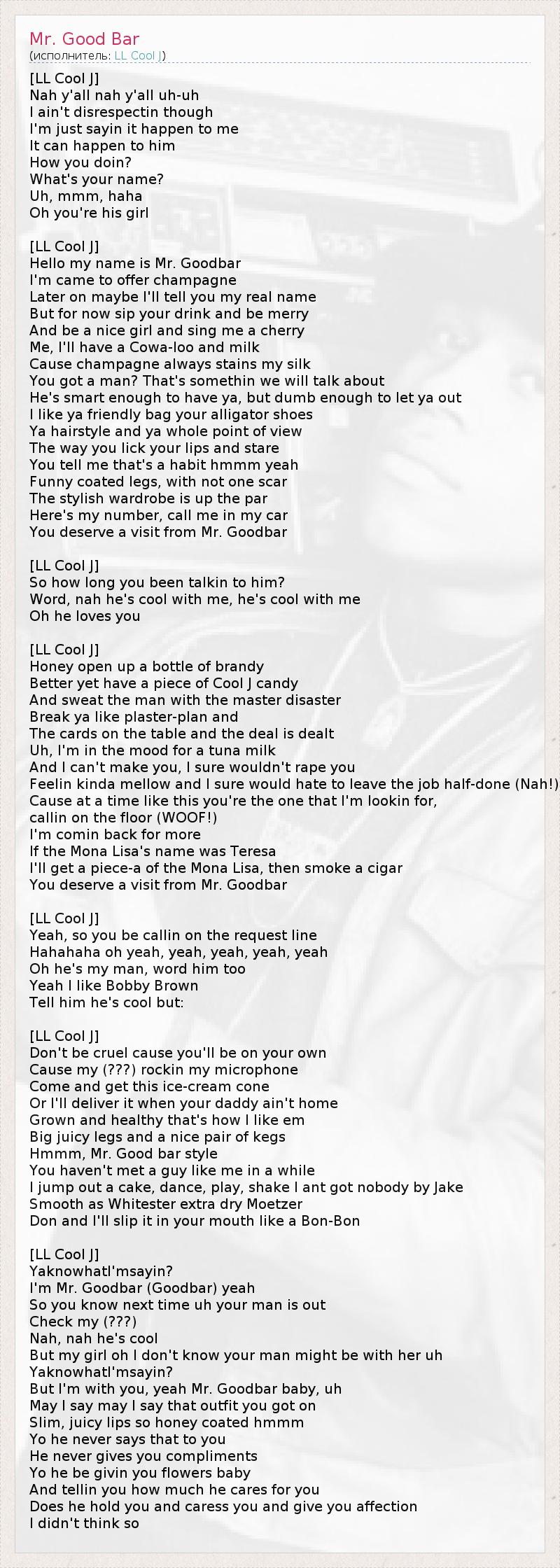 А как ты думаешь, о чем песня "Mr. Good Bar" ?