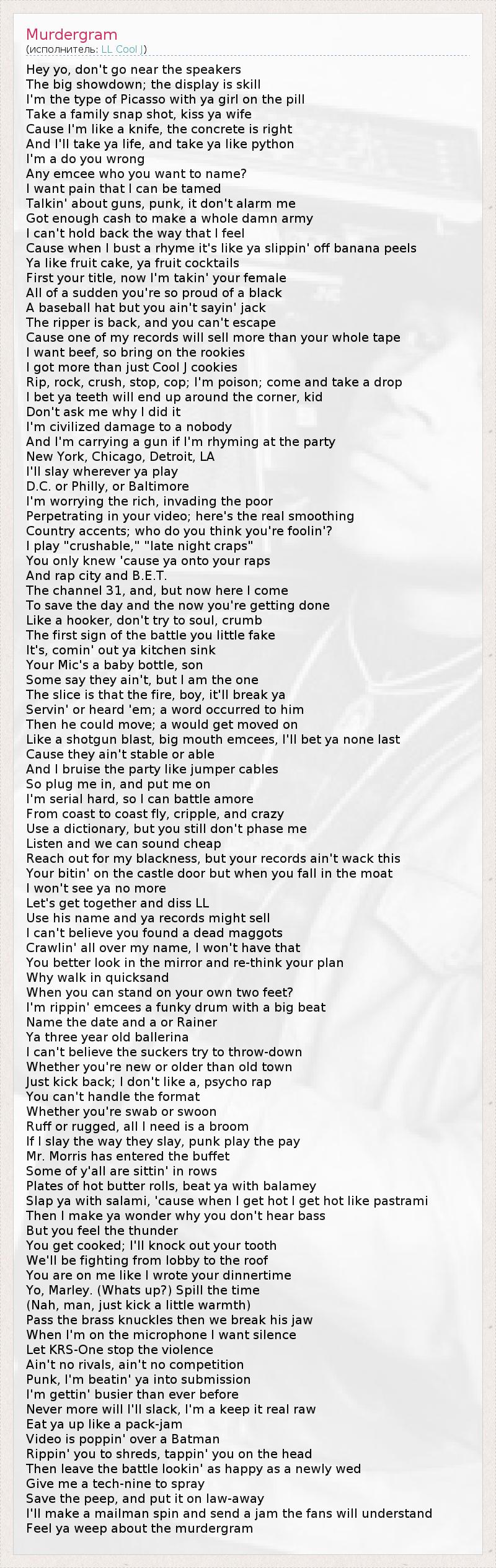 Rip, rock, crush, stop, cop; I'm poison; come and take a drop