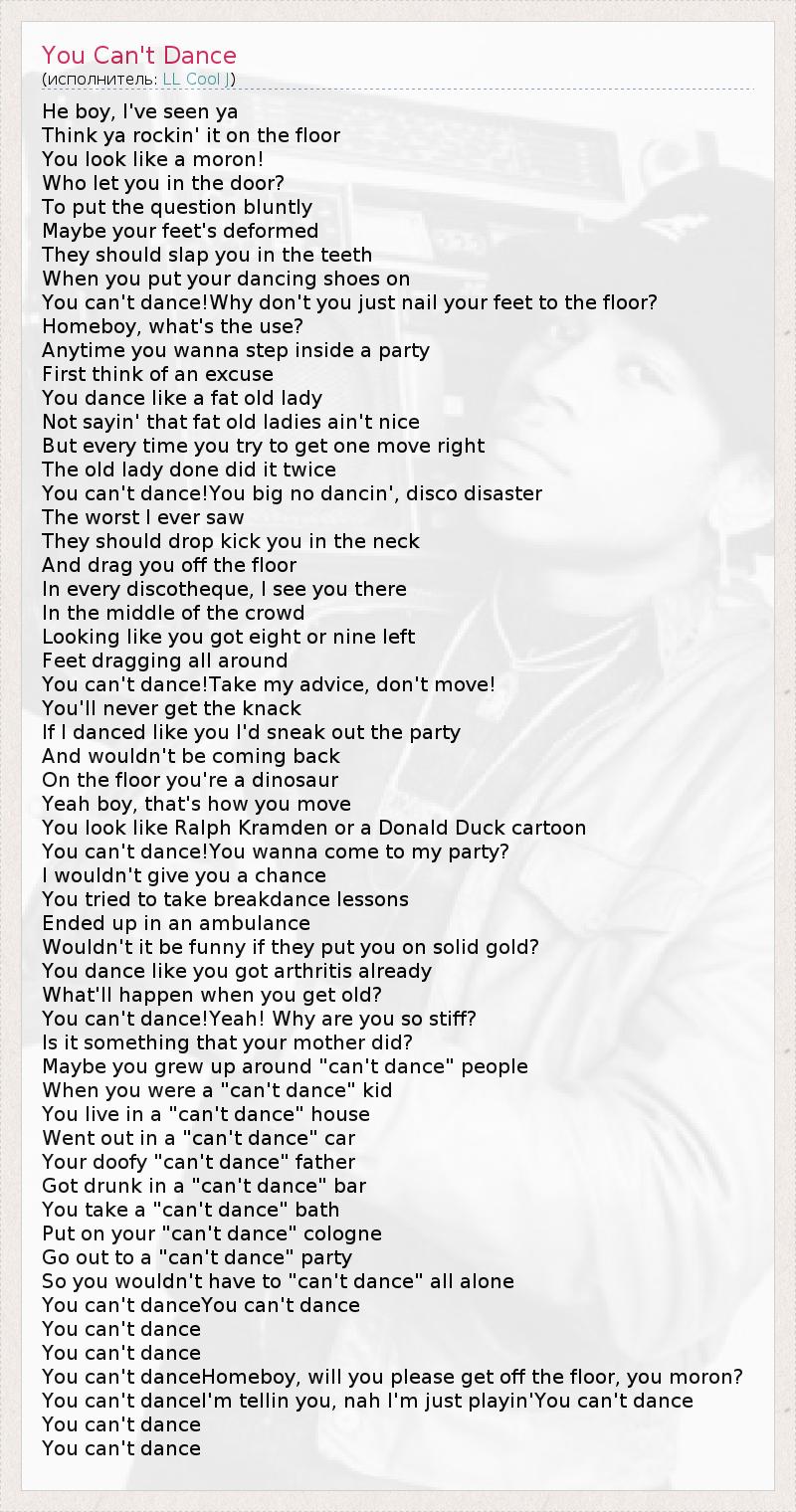 А как ты думаешь, о чем песня "You Can't Dance" ?
