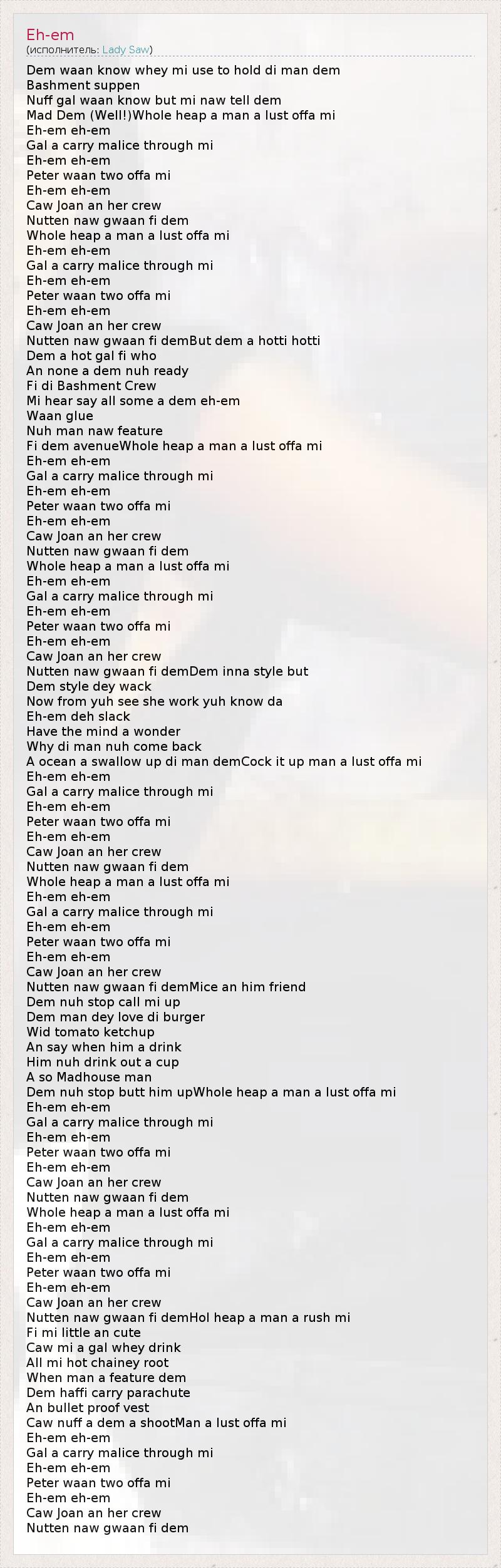 Mad Dem (Well!)Whole heap a man a lust offa mi