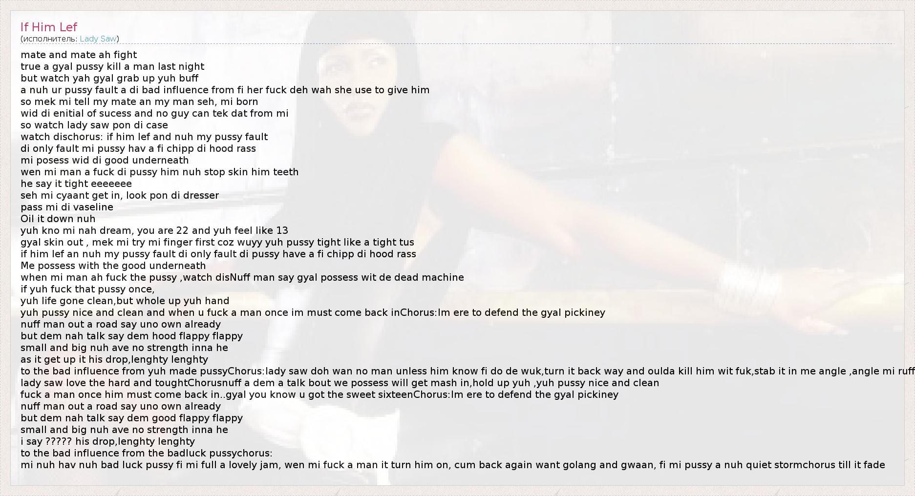 if him lef an nuh my pussy fault di only fault di pussy have a fi chipp di hood rass