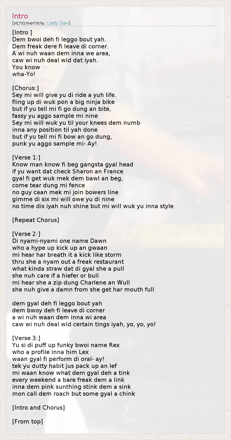 Know man know fi beg gangsta gyal head
