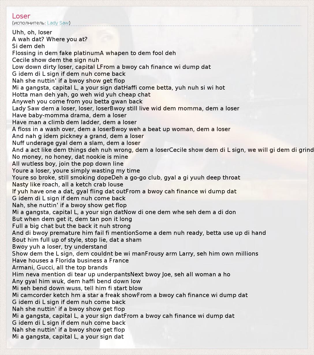 Low down dirty loser, capital LFrom a bwoy cah finance wi dump dat