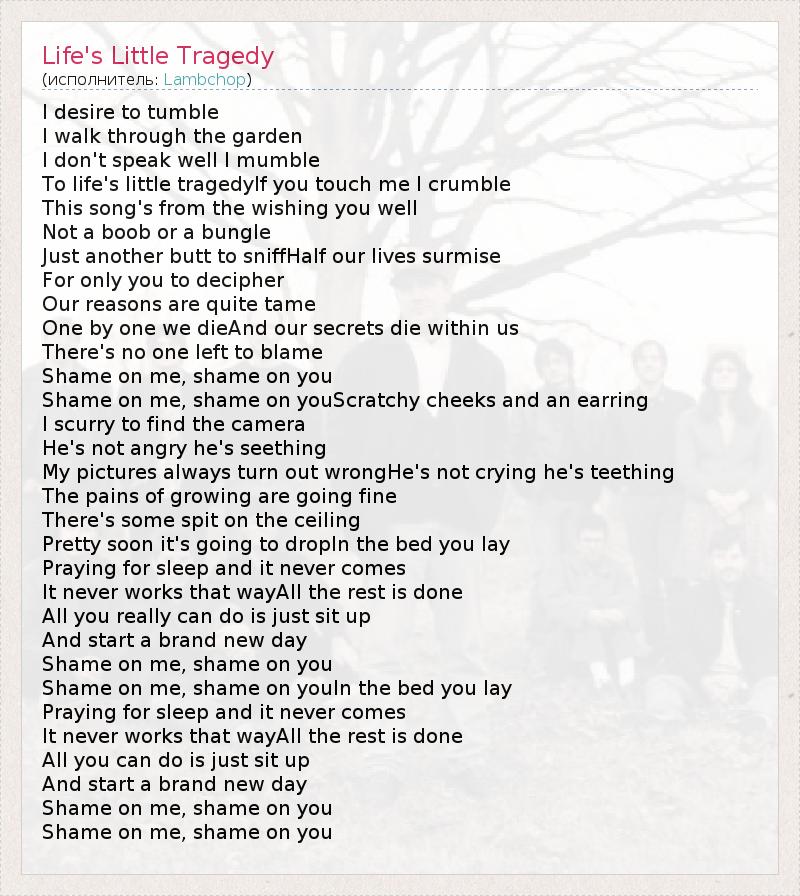 А как ты думаешь, о чем песня "Life's Little Tragedy" ?