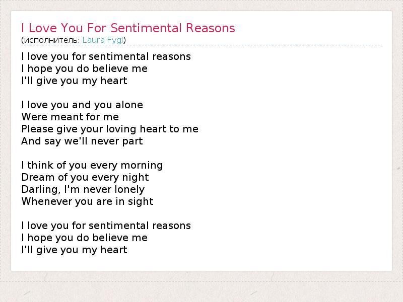А как ты думаешь, о чем песня "I Love You For Sentimental Reasons" ?