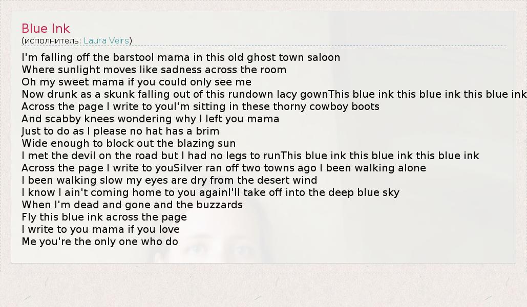А как ты думаешь, о чем песня "Blue Ink" ?
