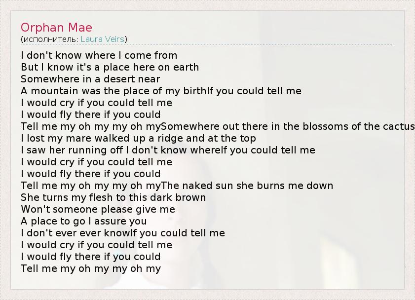 А как ты думаешь, о чем песня "Orphan Mae" ?