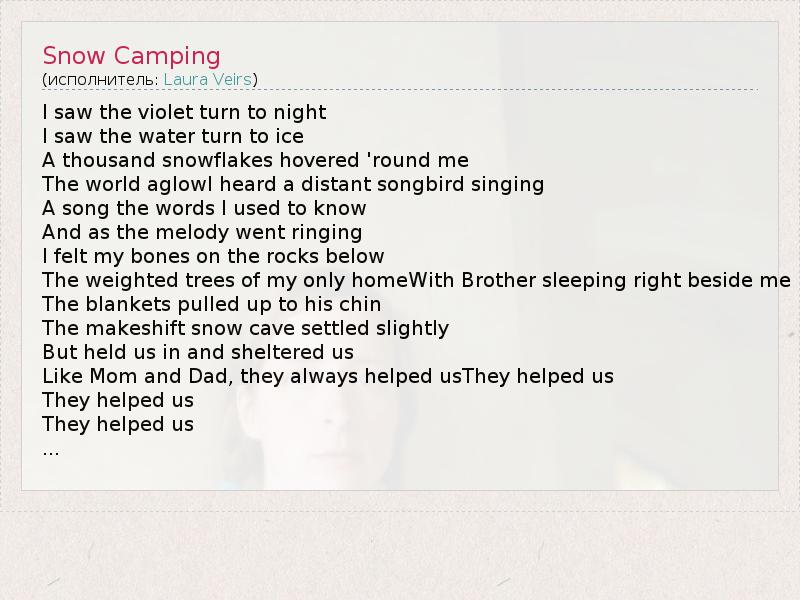 А как ты думаешь, о чем песня "Snow Camping" ?