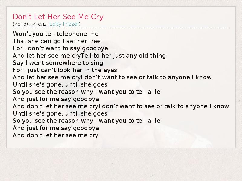 А как ты думаешь, о чем песня "Don't Let Her See Me Cry" ?