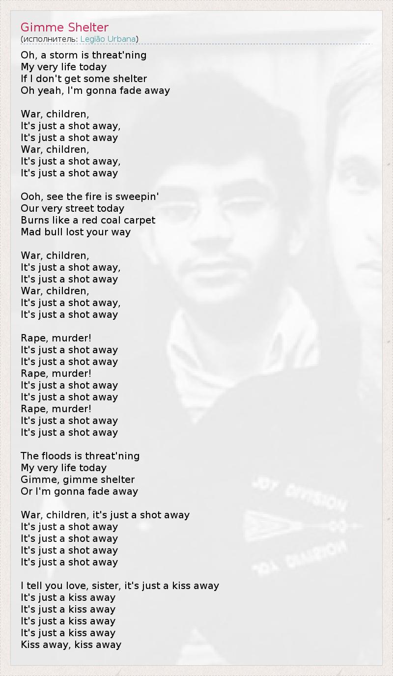 А как ты думаешь, о чем песня "Gimme Shelter" ?