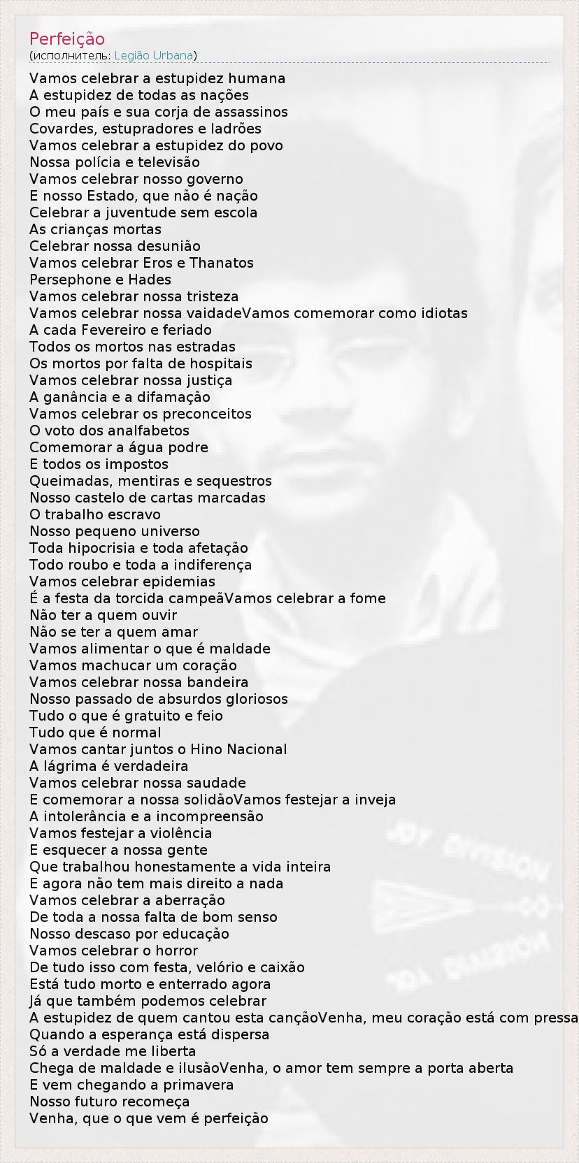 A estupidez de quem cantou esta cançãoVenha, meu coração está com pressa
