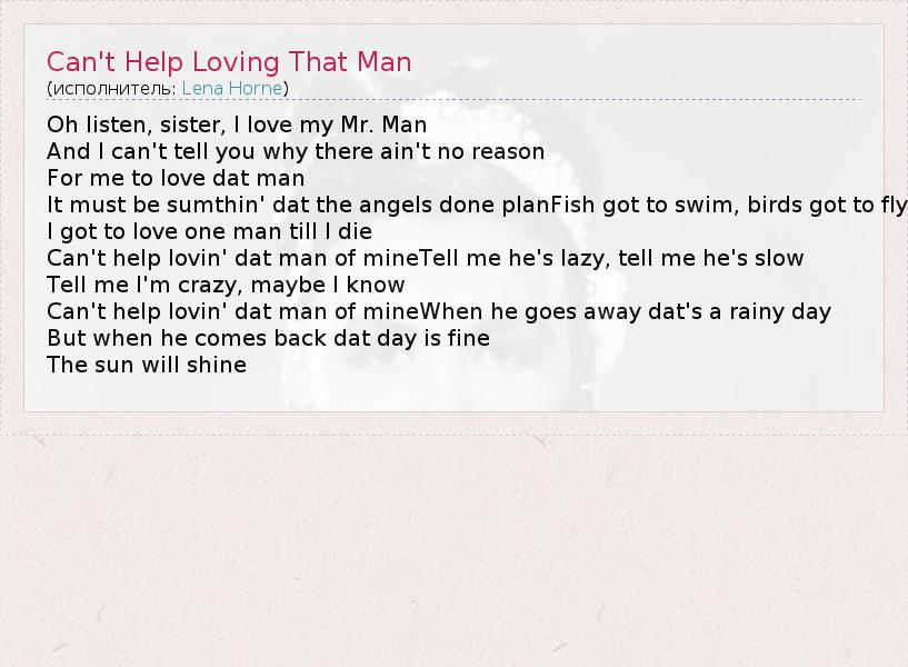 А как ты думаешь, о чем песня "Can't Help Loving That Man" ?