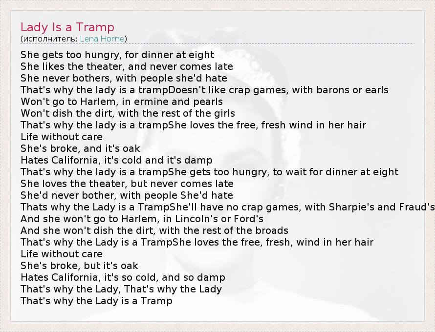 А как ты думаешь, о чем песня "Lady Is a Tramp" ?