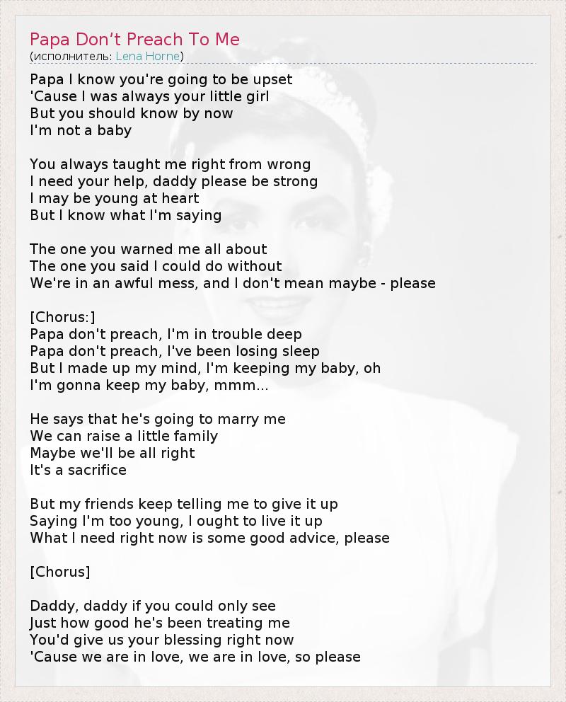 ГлавнаяИсполнителиLena HornePapa Don’t Preach To Me