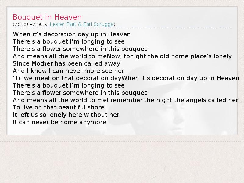 А как ты думаешь, о чем песня "Bouquet in Heaven" ?
