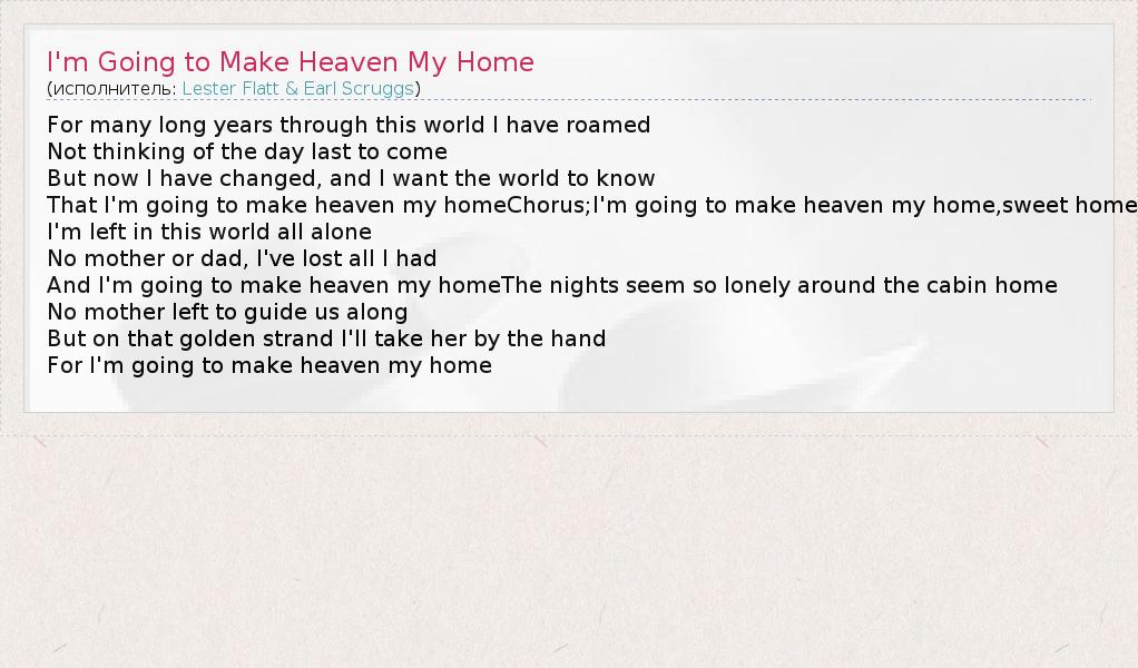 А как ты думаешь, о чем песня "I'm Going to Make Heaven My Home" ?