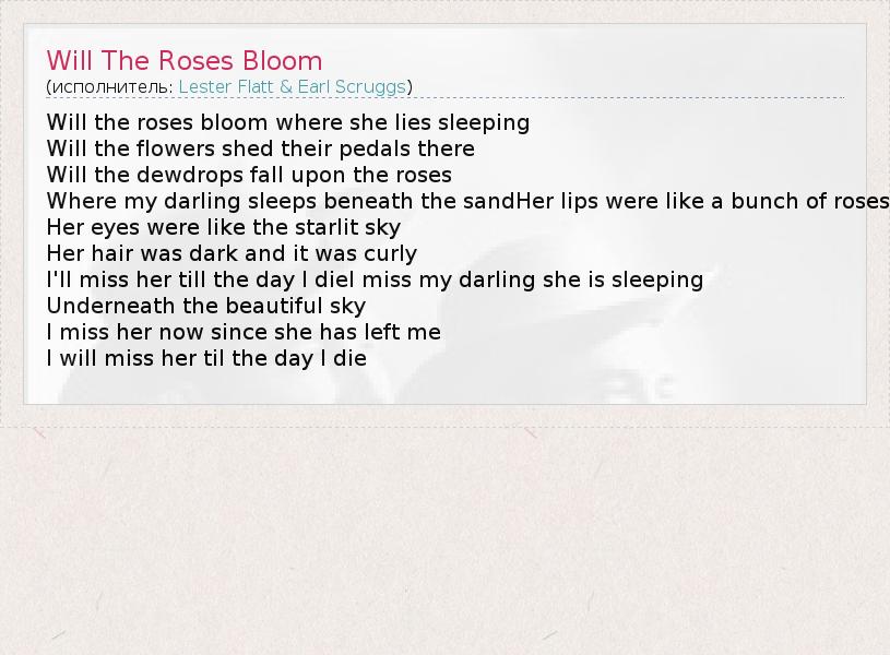 А как ты думаешь, о чем песня "Will The Roses Bloom" ?