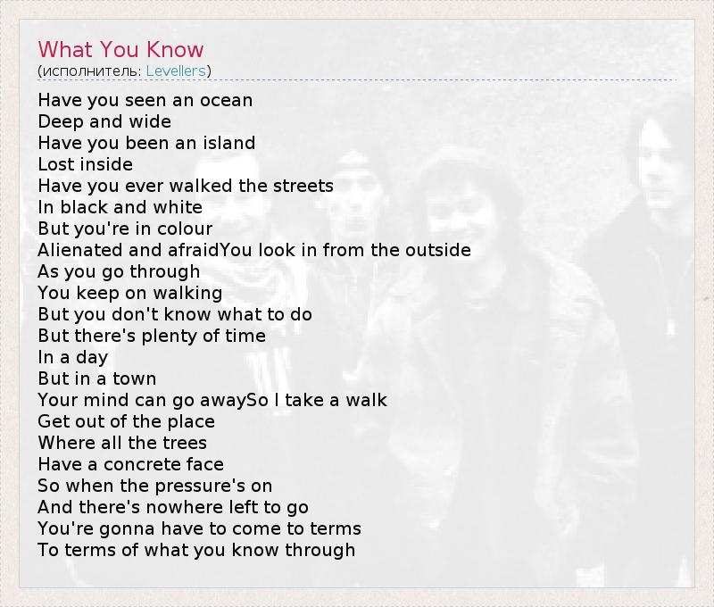 А как ты думаешь, о чем песня "What You Know" ?
