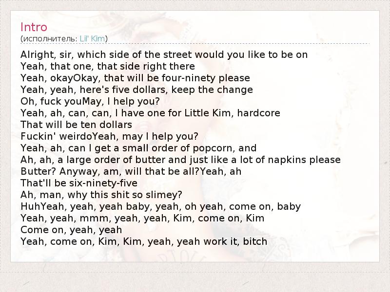 Yeah, yeah, mmm, yeah, yeah, Kim, come on, Kim