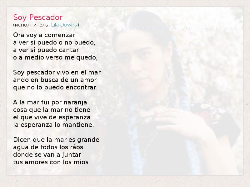 А как ты думаешь, о чем песня "Soy Pescador" ?