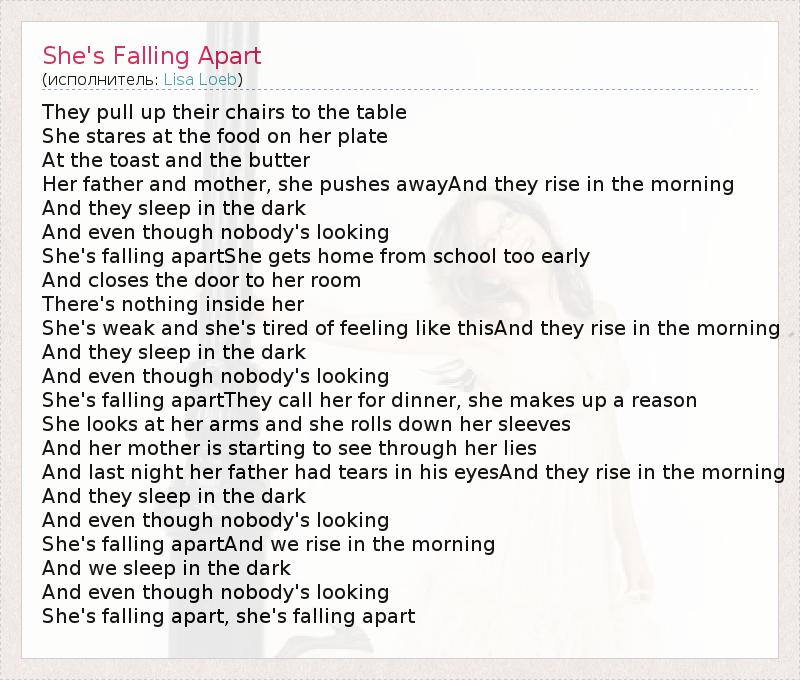 А как ты думаешь, о чем песня "She's Falling Apart" ?