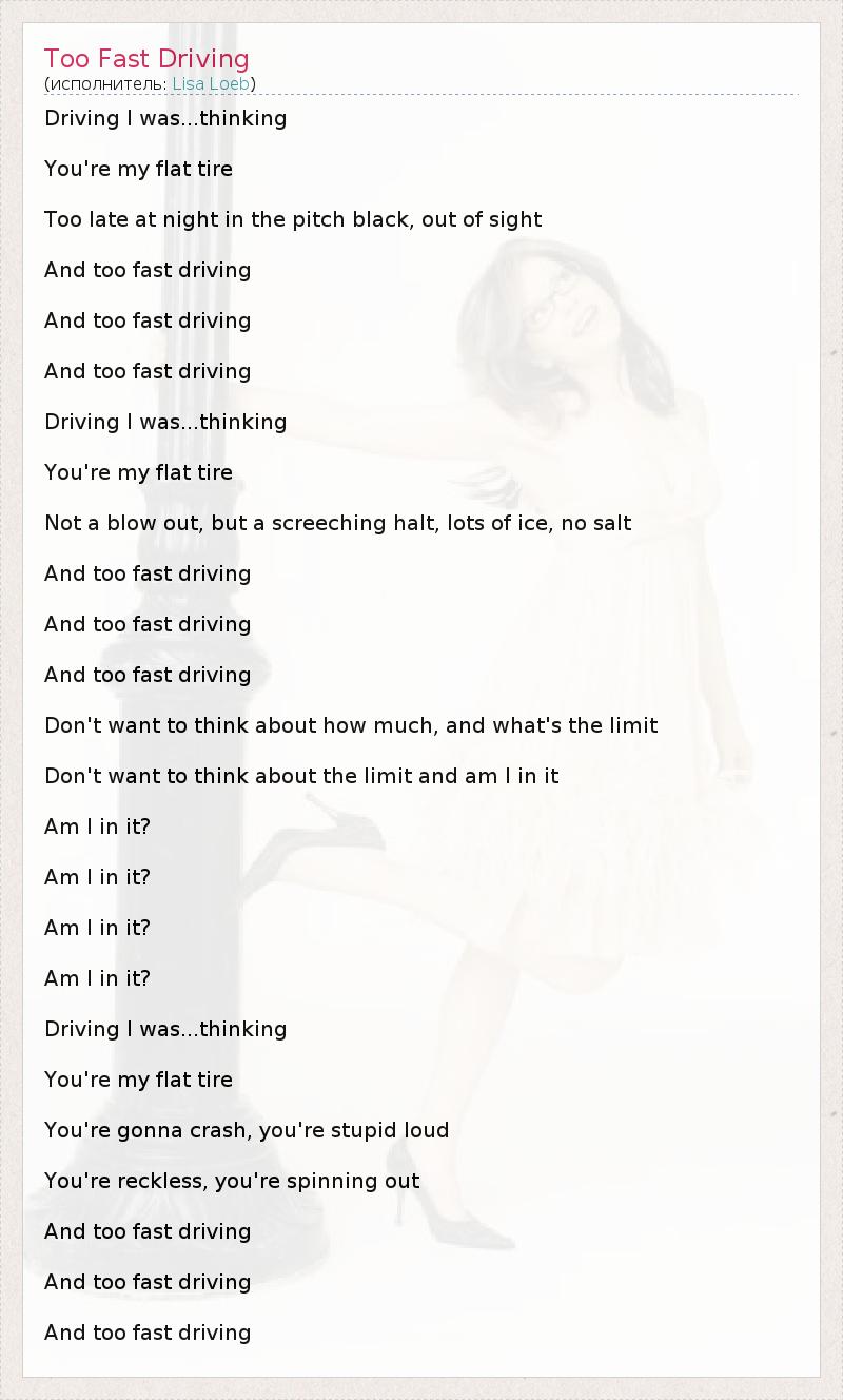 А как ты думаешь, о чем песня "Too Fast Driving" ?