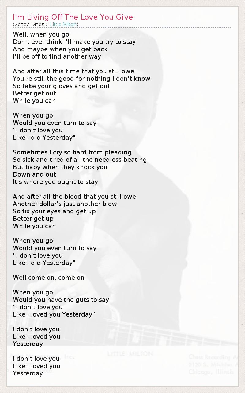 ГлавнаяИсполнителиLittle MiltonI'm Living Off The Love You Give