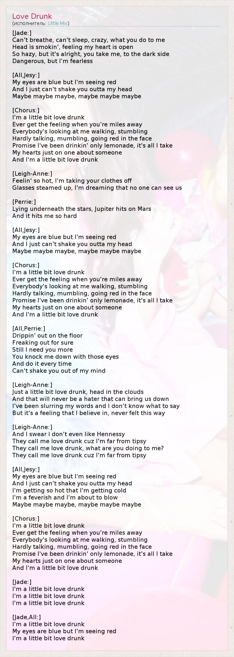 А как ты думаешь, о чем песня "Love Drunk" ?