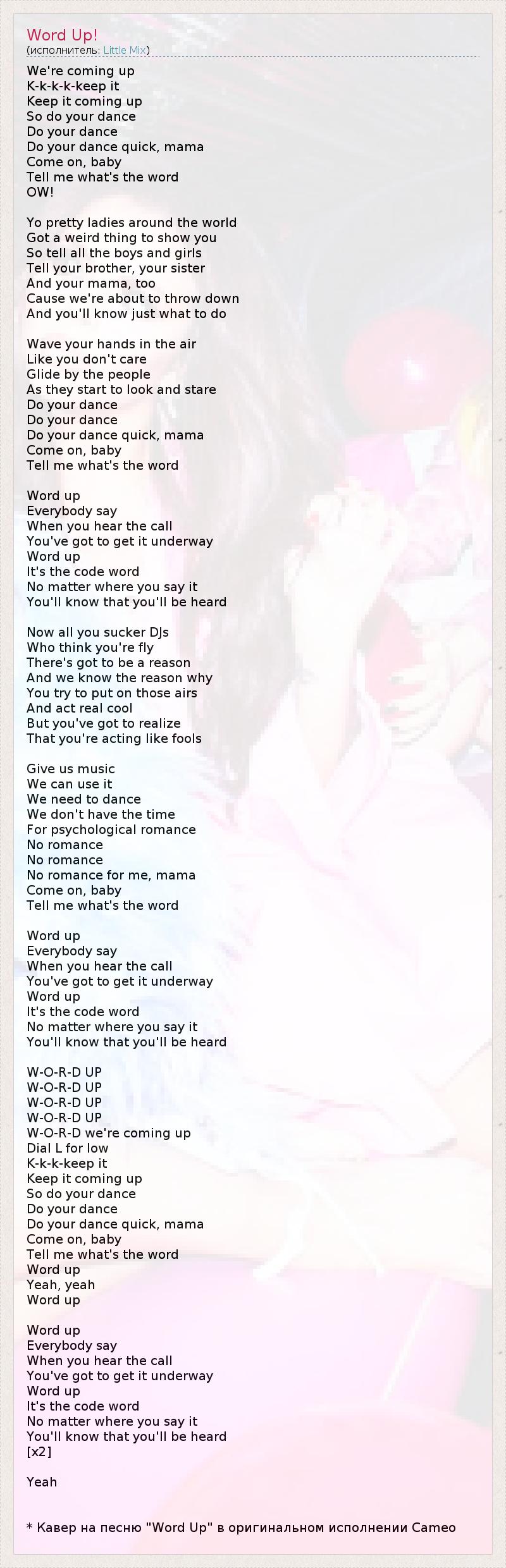 * Кавер на песню "Word Up" в оригинальном исполнении Cameo