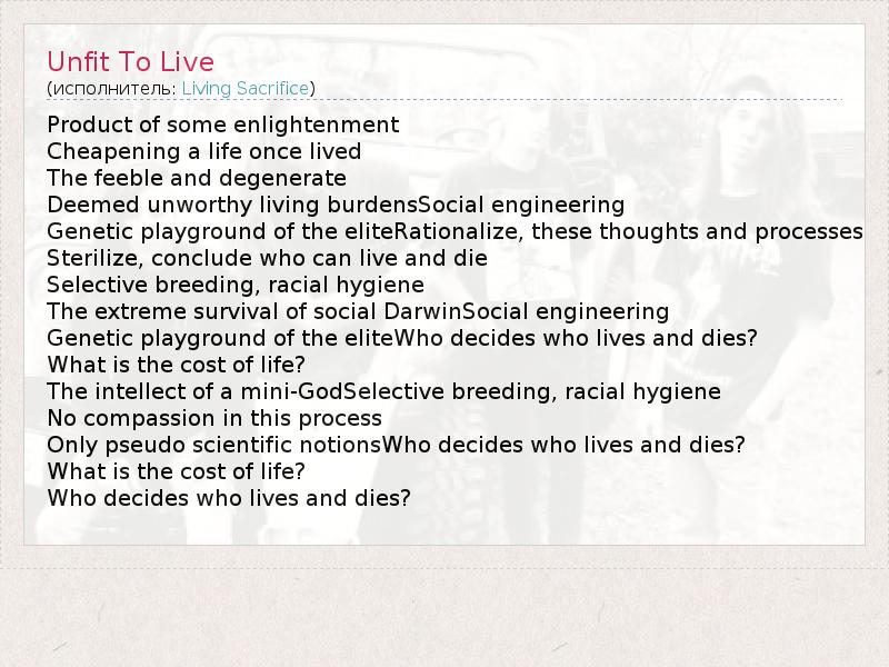 А как ты думаешь, о чем песня "Unfit To Live" ?