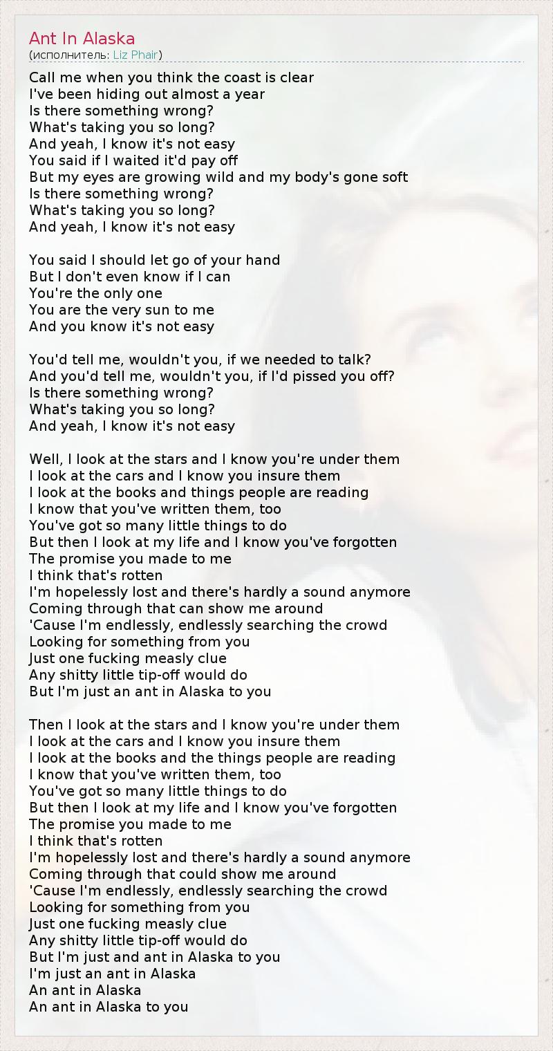 А как ты думаешь, о чем песня "Ant In Alaska" ?