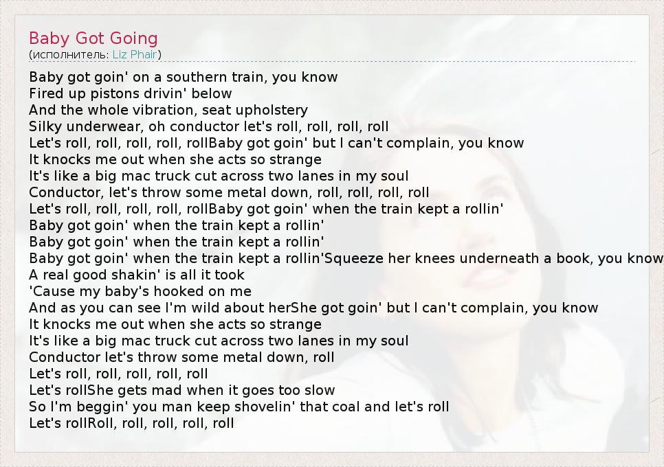 Baby got goin' when the train kept a rollin'Squeeze her knees underneath a book, you know