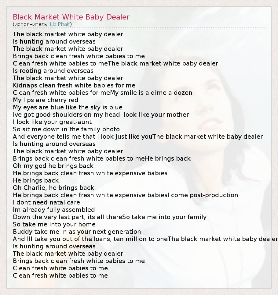 А как ты думаешь, о чем песня "Black Market White Baby Dealer" ?