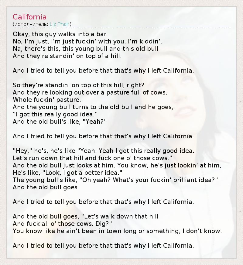 А как ты думаешь, о чем песня "California" ?