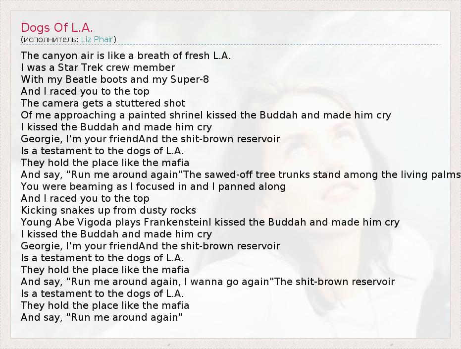 А как ты думаешь, о чем песня "Dogs Of L.A." ?