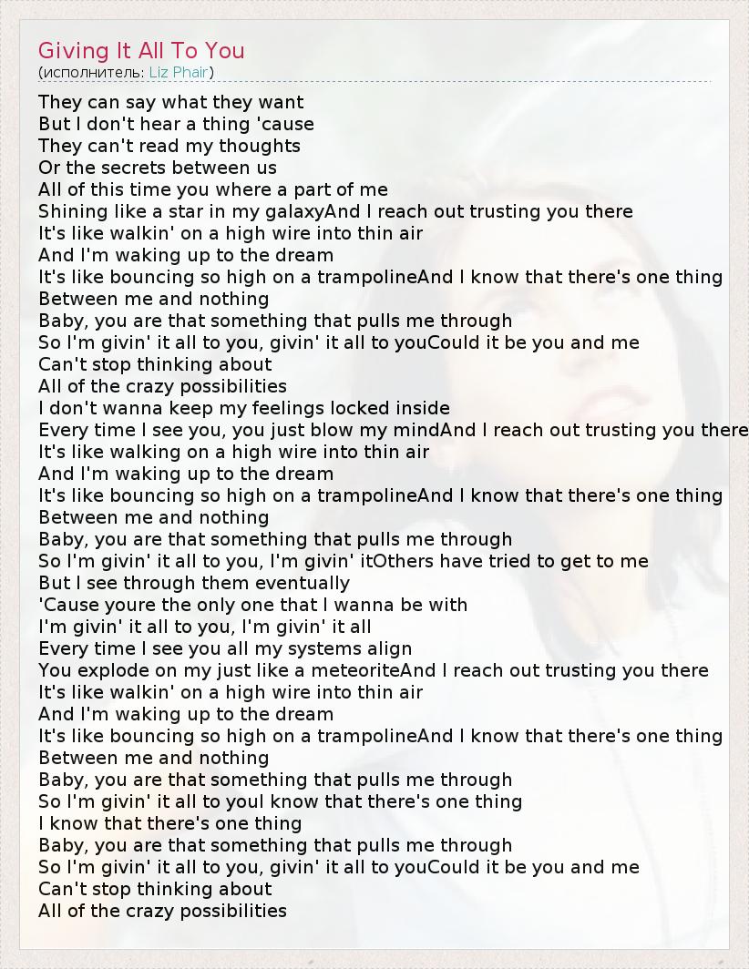 А как ты думаешь, о чем песня "Giving It All To You" ?