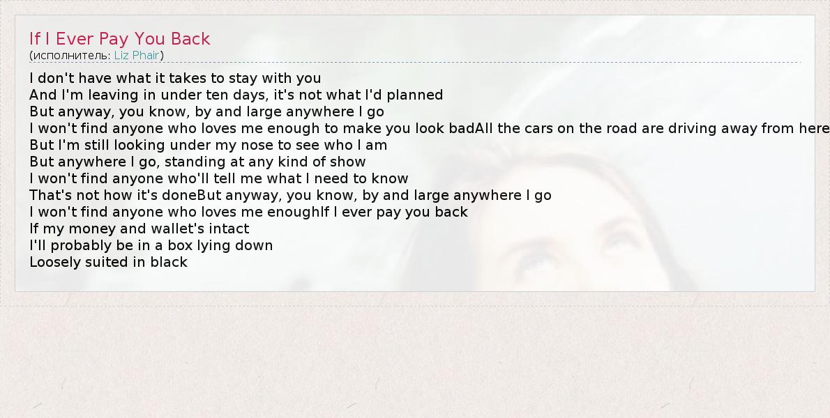 А как ты думаешь, о чем песня "If I Ever Pay You Back" ?