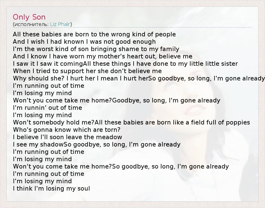 А как ты думаешь, о чем песня "Only Son" ?