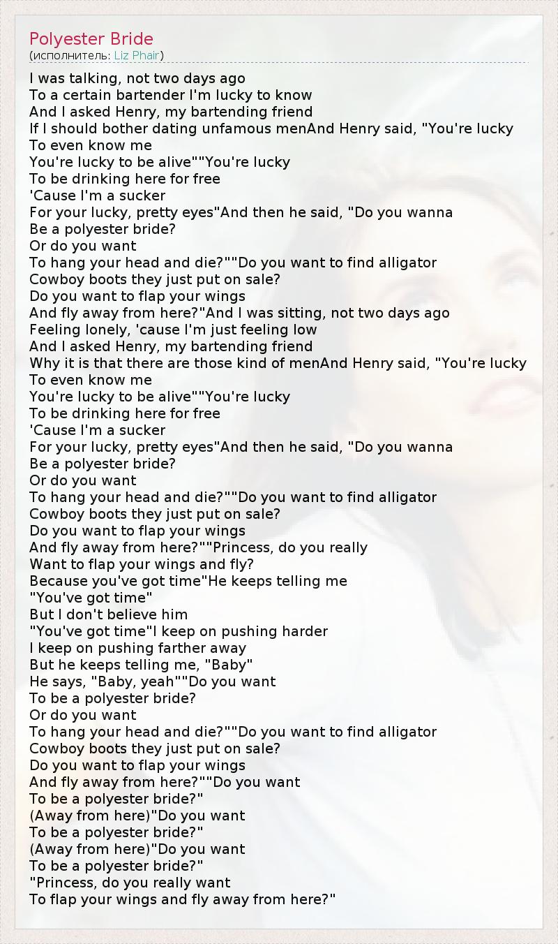 А как ты думаешь, о чем песня "Polyester Bride" ?