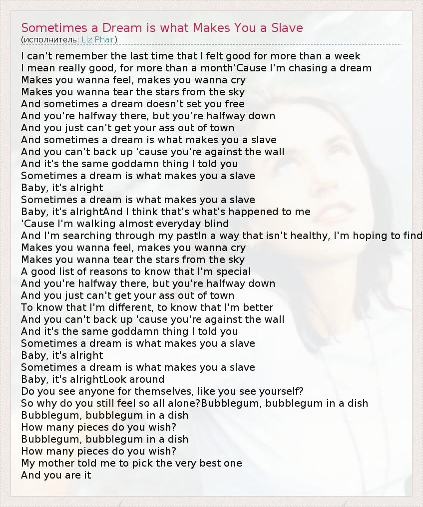 А как ты думаешь, о чем песня "Sometimes a Dream is what Makes You a Slave" ?